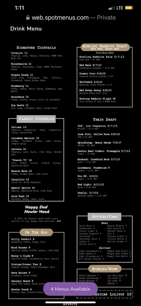 Located in McAllen, TX, Howling Rabbits Beerworks offers a unique experience with its cocktail bars, pizza, and variety of beers. The restaurant provides a range of amenities such as outdoor seating, full bar, happy hour specials, and live sports broadcasts on huge TV screens. Customers have praised the delicious Rib Eye and Pastor Tacos, along with a vast selection of craft beers like the Guava Rabbit Punch and Palm City Blonde. The industrial-chic ambiance adds to the overall experience, making it a popular spot for locals and visitors alike. The staff is accommodating and the service is efficient, despite occasional busyness. For a memorable dining experience with great tacos and beer, Howling Rabbits Beerworks is a must-visit destination in McAllen.